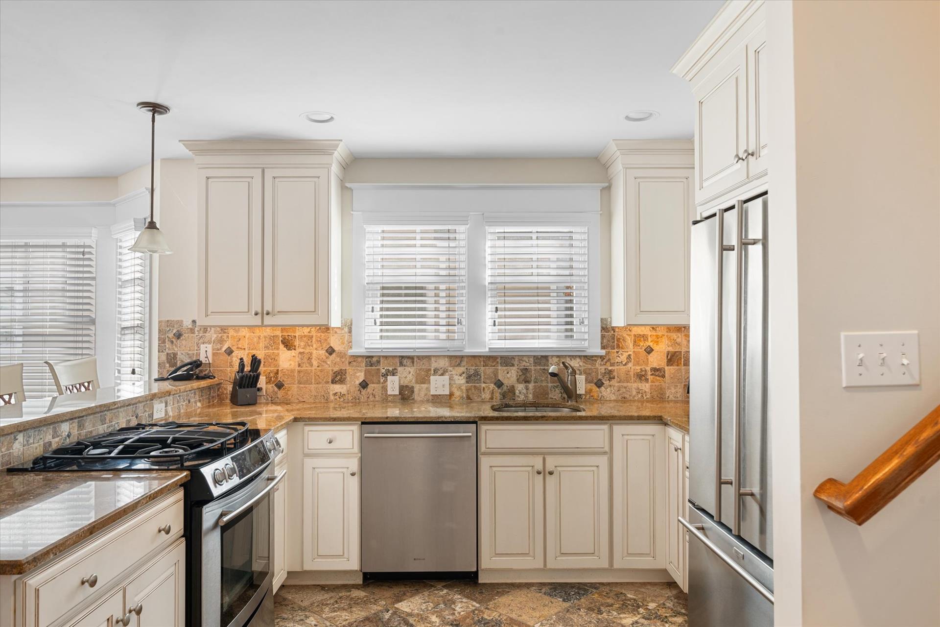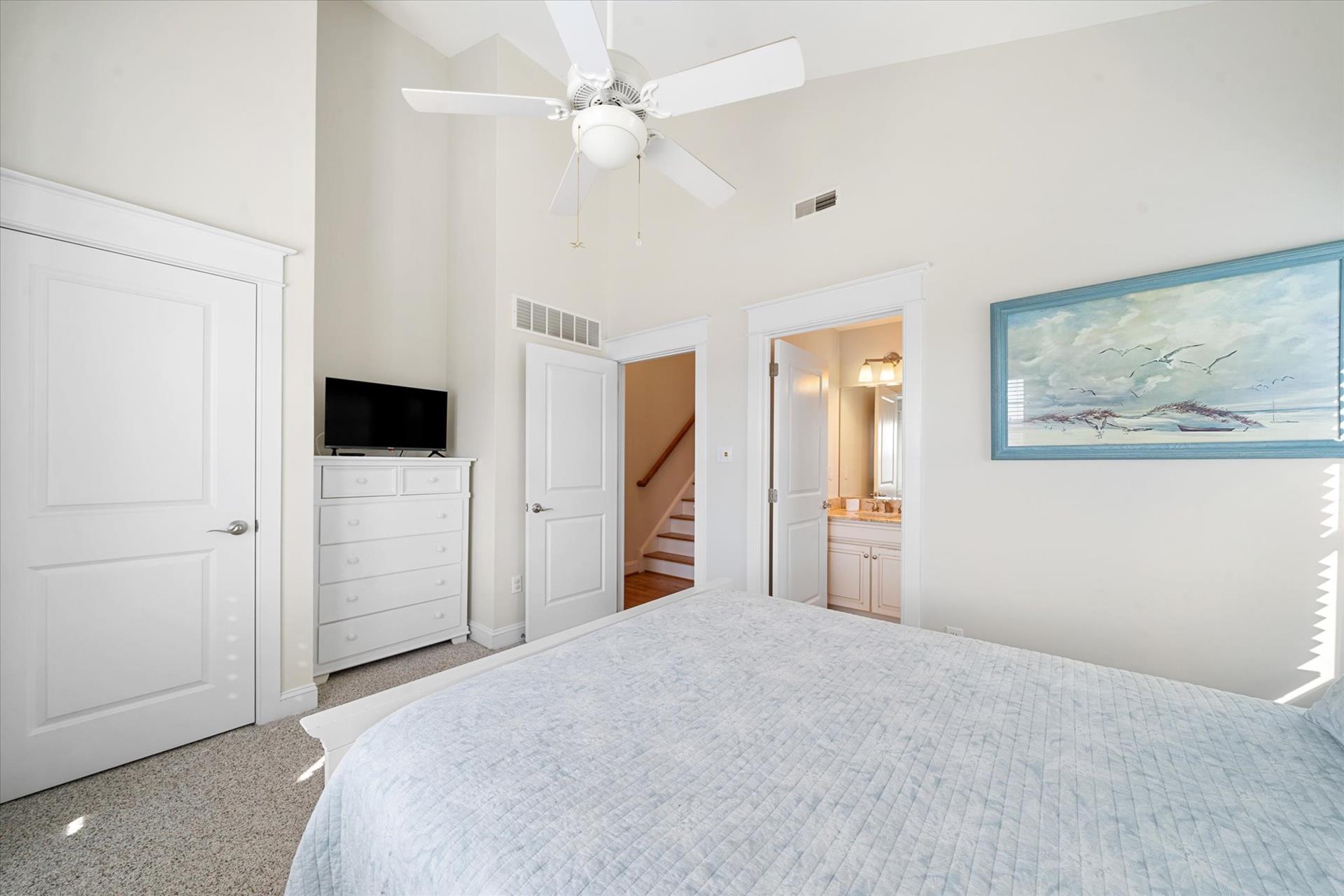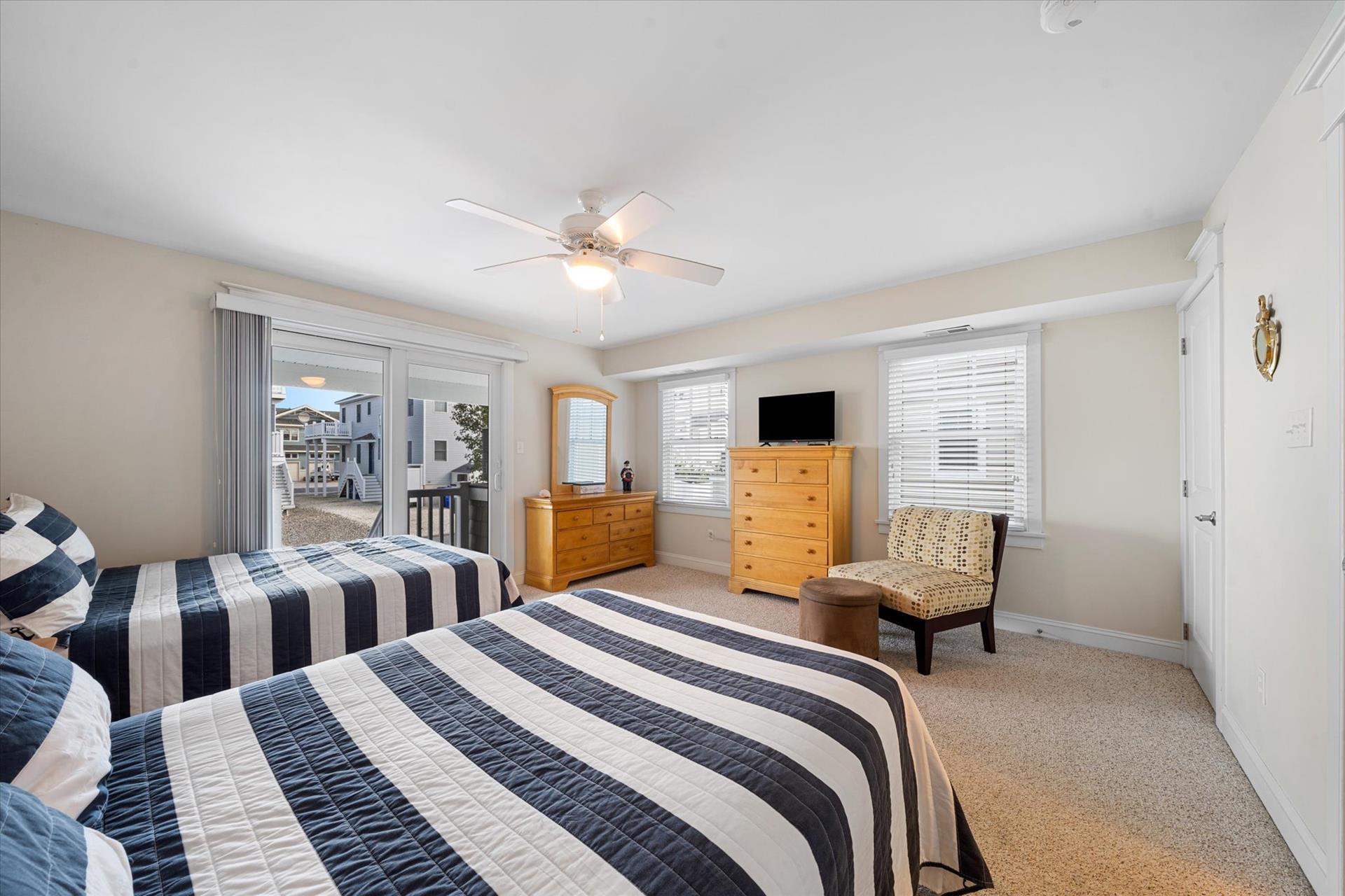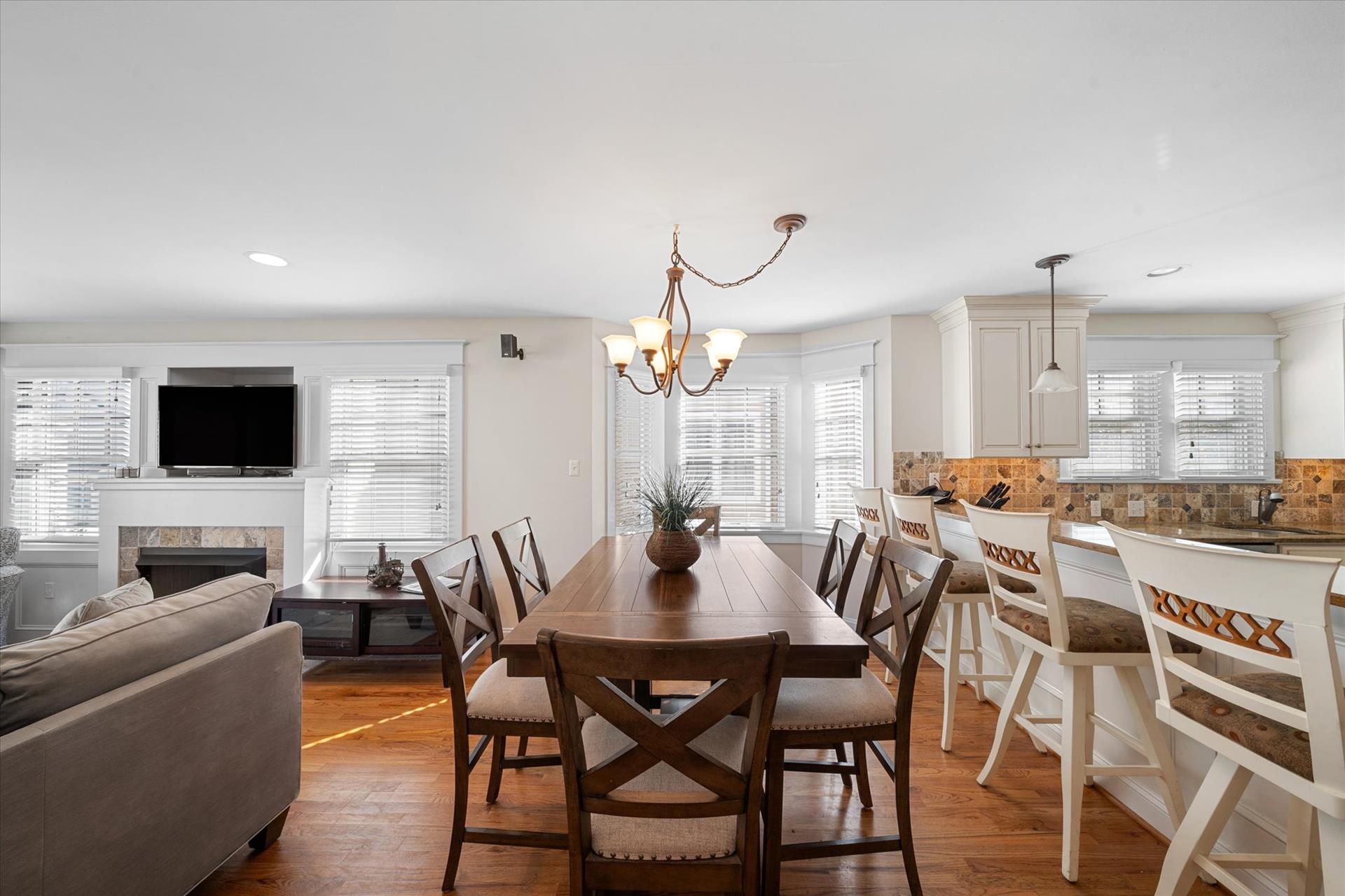 | UPSCALE TOWNHOME! This convenient location is only about 4 blocks into town & less than a block to the bay front Public Dock, where you can swim, join your boating friends, or sip a cool drink and watch the sunsets! This 3-story townhome offers multiple decks & is packed with amenities! The multiple decks enable you to follow your choice of the sun or shade! Spacious bedrooms, upgraded, custom tiled bathrooms with granite counters & glass shower enclosures, hardwood flooring throughout, a beautiful kitchen with granite counters, stainless steel appliances & more! For this multi-level townhouse, here is the floor plan: 1st level offers 1 bedroom w/2 double beds, a hall bathroom and laundry room. The 2nd level offers 1 bedroom w/2 single beds & a hall bathroom. The 3rd level offers the Great Room, the 4th level offers 1 bedroom w/Queen bed, bathroom. The 5th level offers the master suite offering a King bed & attached bathroom. The concrete crawl space adds precious storage area underneath the home while at the same time helping to limit moisture intrusion into the home. There is also a built-in storage area on the side of the building, a 2 car off street parking pad & a private outdoor shower. There is a wet bar with a wine cooler and two drawer refrigerator, and an extra refrigerator located in the 2nd floor Great room. Owner provides Wireless Internet and a changeover cleaning upon your departure! |
